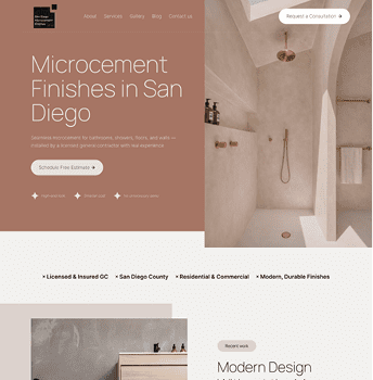 I designed a conversion-focused service website for Microcement Finishes San Diego, aimed at clearly explaining a niche, high-end construction service while building trust and authority.