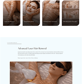I developed a visual direction that included a new hero banner and sample interior sections to demonstrate layout, typography, and overall aesthetic. The concept balances elegance and simplicity, focusing on whitespace, soothing color palettes, and clear service presentation.
